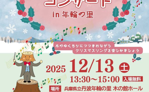 2025年11月13日おしらせnenrin 第8回緑の中のコンサート「クリスマスコンサート」緑いっぱいの自然あふれる丹波年輪の里で、音楽を通じて癒しや安らぎの時間を過ごしてみませんか。今回は「丹波少年少女合唱団」と「M.Saji(ハンドベル)」をお迎えし、クリスマスソングを披露していただきます。どなた様もぜひお […]